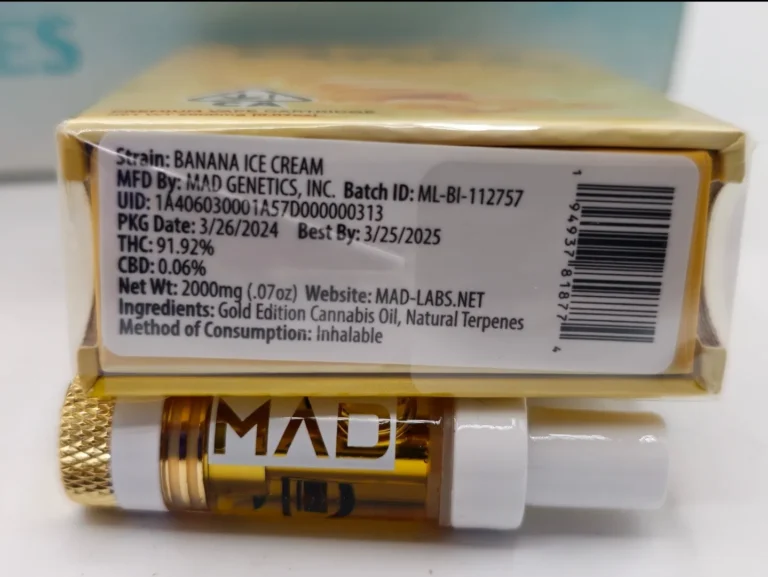 In the 2026 lineup of “Gourmet Hybrids,” the Mad Labs Banana Ice Cream 2g cartridge has become a favorite for those who prioritize a smooth, dessert-like experience. This strain perfectly balances the tropical sweetness of overripe bananas with the rich, doughy finish of a premium Gelato cross. Housed in our new mad labs 2g hardware, this cartridge is engineered to handle our signature liquid diamonds, ensuring every pull is as flavorful as a fresh-churned treat.