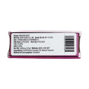 The mad labs dragon fruit disposable vape delivers a sweet fruit profile inspired by the dragon fruit strain, offering a smooth inhale and flavorful vapor. With its 2-gram oil capacity and portable design, this device provides longer sessions without complicated setups.