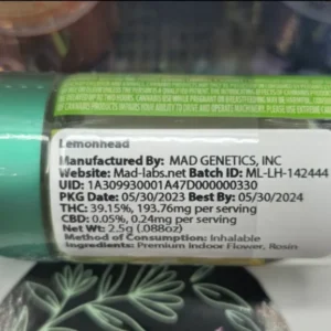 Q4: Does it taste like “fake” lemon? No. Mad Labs uses natural, live resin terpenes to capture the authentic, complex scent of the Lemon Head plant.
