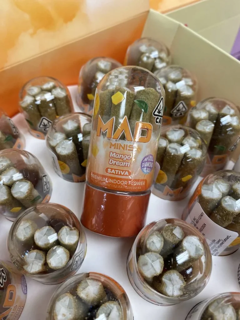 Q1: How many pre-rolls are in a pack? Each pack of Mad Minis contains five 0.5g infused pre-rolls, totaling 2.5g of premium product.